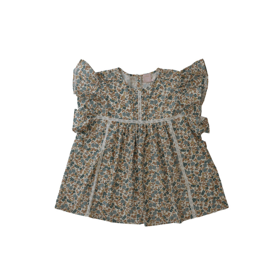 Plumetis printed cotton blouse with Valenciennes lace inserts