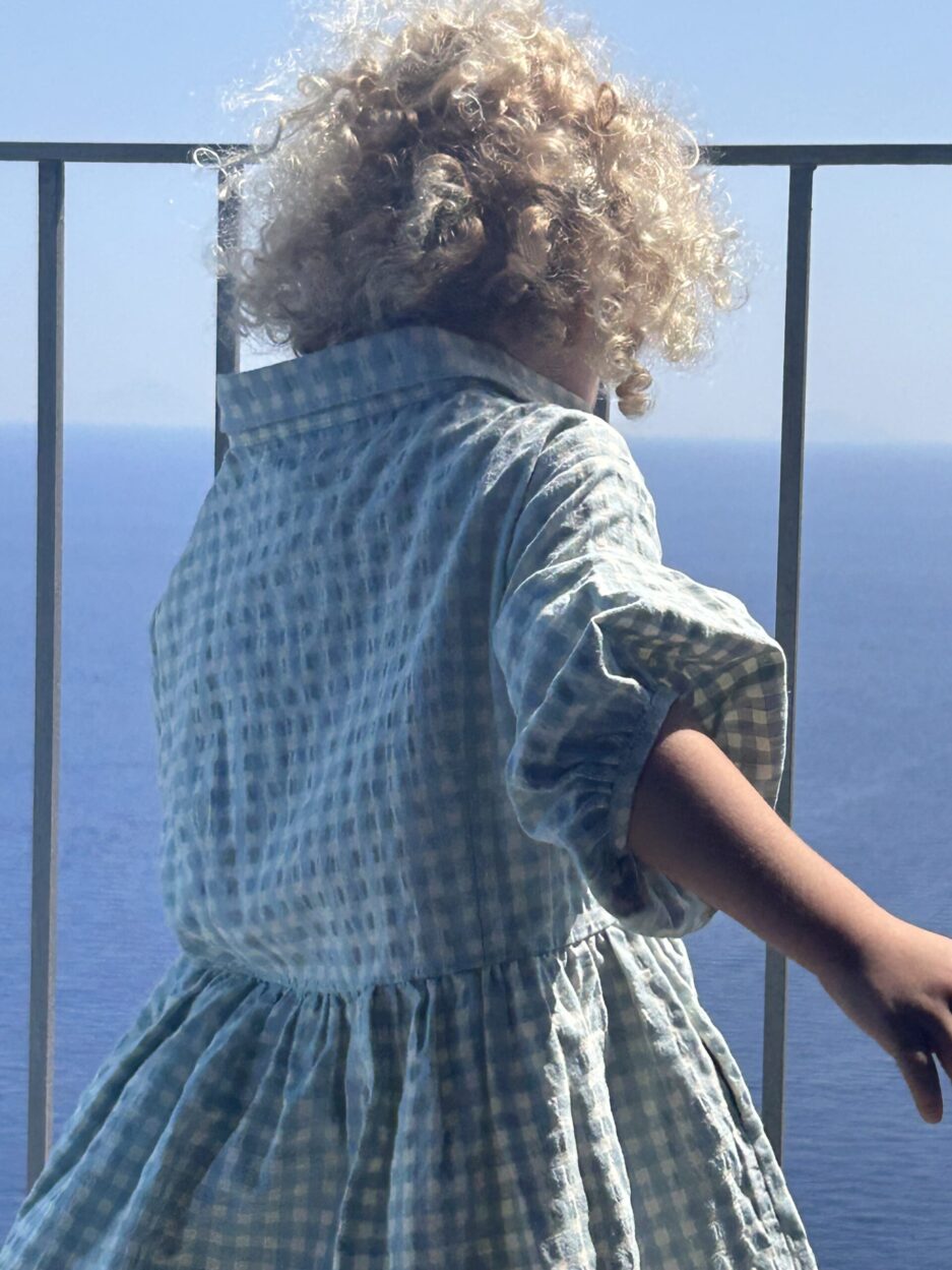 Patterned cotton dress with collar and 3/4 sleeves