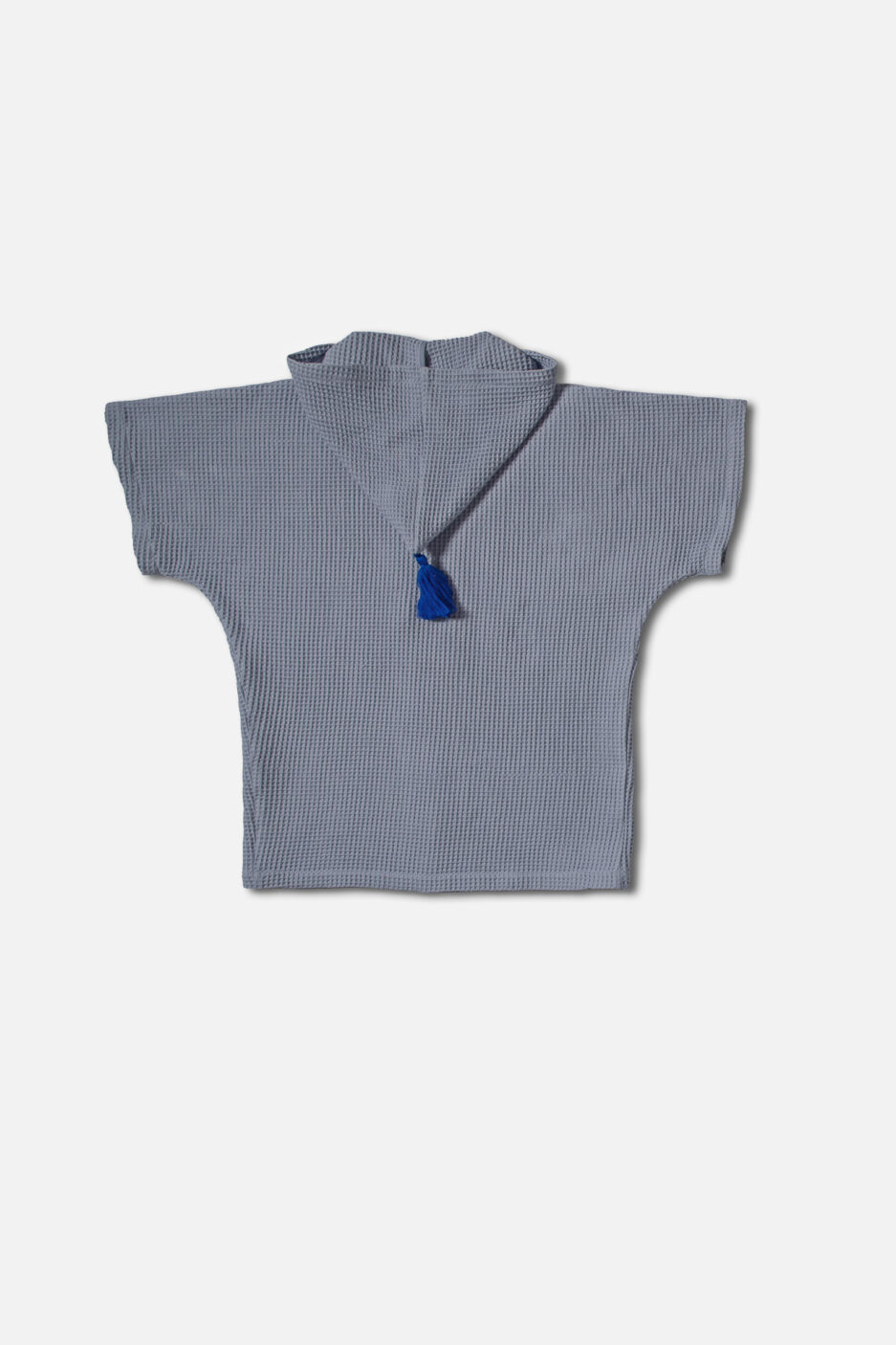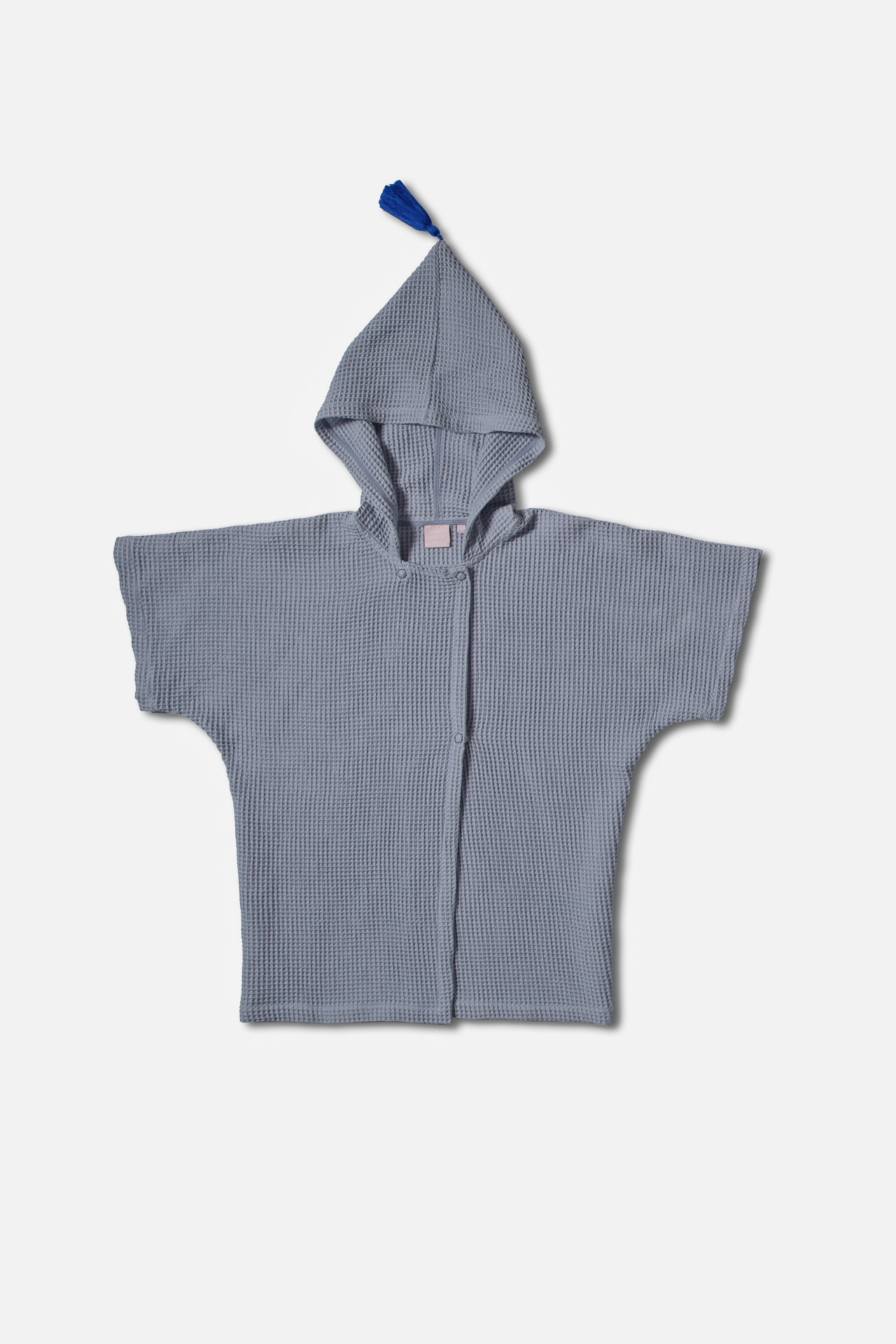 Accappatoio in cotone organico con cappuccio da elfo e nappina colorata