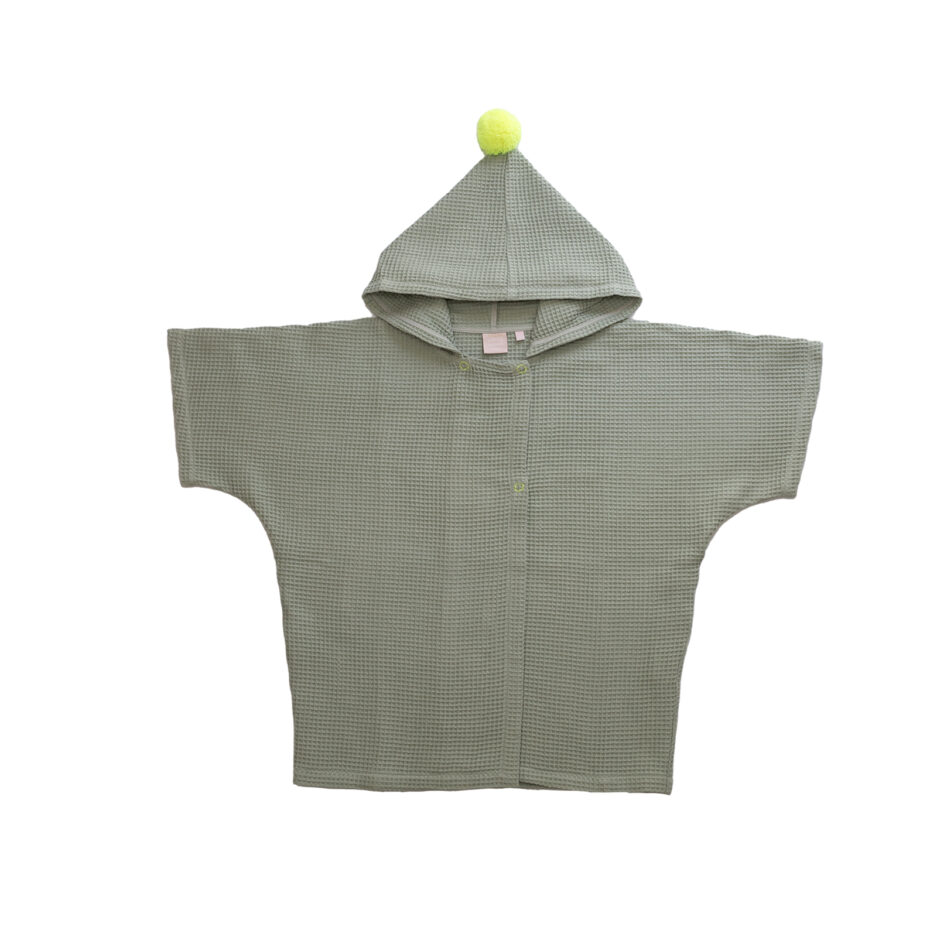Accappatoio con cappuccio da elfo e maxi pompon fluo